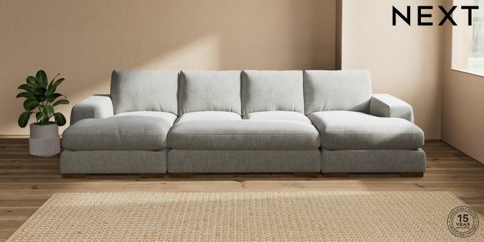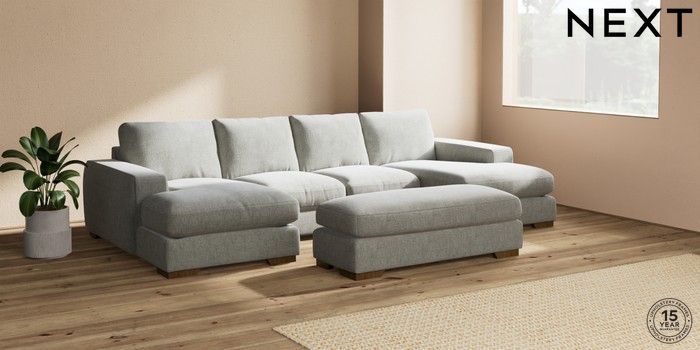 7.2.10 Houghton Deep Relaxed Sit Large - U Shaped Double Chaise with Footstool Chunky Chenille Light Grey Large Square Angle - Mid | Made Click here to use our website with more accessibility support, for example screen readers