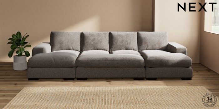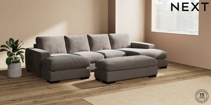 7.2.10 Houghton Deep Relaxed Sit Large - U Shaped Double Chaise with Footstool Chunky Chenille Mink Brown Large Square Angle - Dark | Made Click here to use our website with more accessibility support, for example screen readers