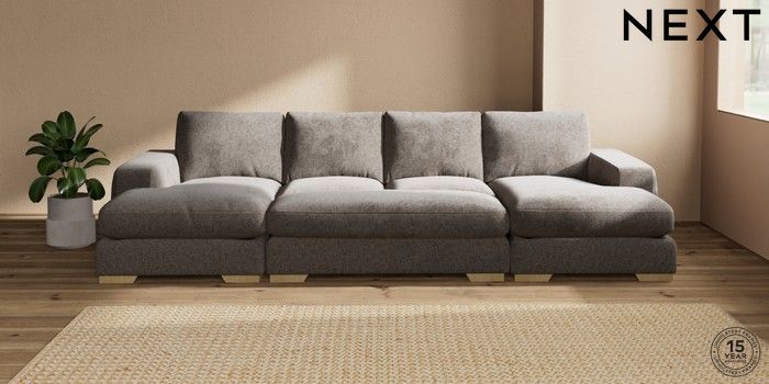 7.2.10 Houghton Deep Relaxed Sit Large - U Shaped Double Chaise with Footstool Chunky Chenille Mink Brown Large Square Angle - Light | Made Click here to use our website with more accessibility support, for example screen readers