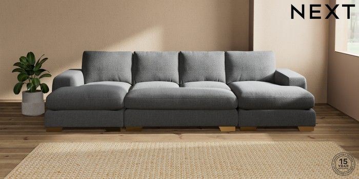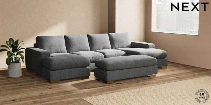 7.2.10 Houghton Deep Relaxed Sit Large - U Shaped Double Chaise with Footstool Chunky Texture Dark Grey Large Square Angle - Brushed Brass | Made Click here to use our website with more accessibility support, for example screen readers
