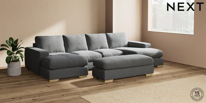 7.2.10 Houghton Deep Relaxed Sit Large - U Shaped Double Chaise with Footstool Chunky Texture Dark Grey Large Square Angle - Light | Made Click here to use our website with more accessibility support, for example screen readers