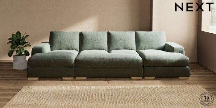 7.2.10 Houghton Deep Relaxed Sit Large - U Shaped Double Chaise with Footstool Chunky Texture Mid Forest Green Large Square Angle - Light | Made Click here to use our website with more accessibility support, for example screen readers