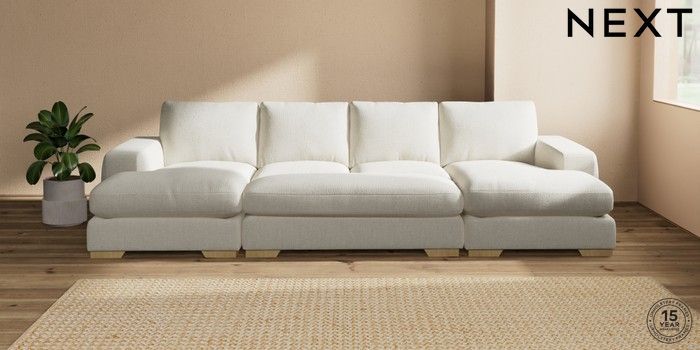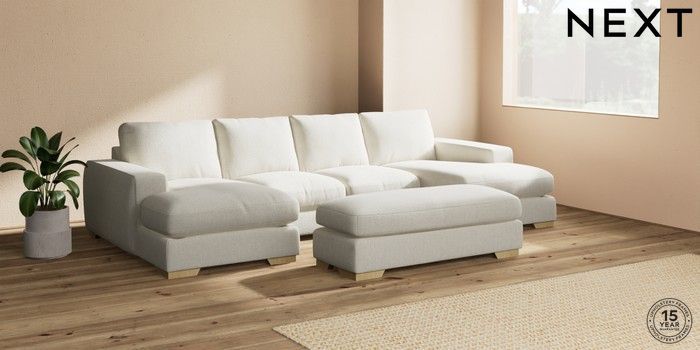 7.2.10 Houghton Deep Relaxed Sit Large - U Shaped Double Chaise with Footstool Chunky Texture Oyster Large Square Angle - Light | Made Click here to use our website with more accessibility support, for example screen readers