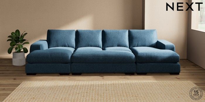 7.2.10 Houghton Deep Relaxed Sit Large - U Shaped Double Chaise with Footstool Cotswold Chenille Dark Blue Large Square Angle - Dark | Made Click here to use our website with more accessibility support, for example screen readers