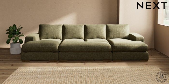 7.2.10 Houghton Deep Relaxed Sit Large - U Shaped Double Chaise with Footstool Cotswold Chenille Dark Green Large Square Angle - Mid | Made Click here to use our website with more accessibility support, for example screen readers
