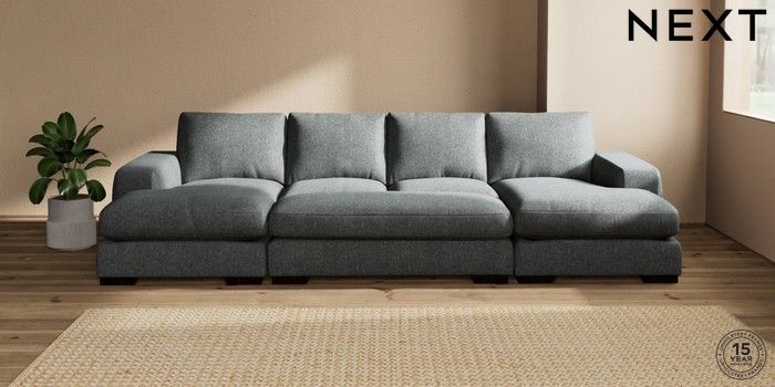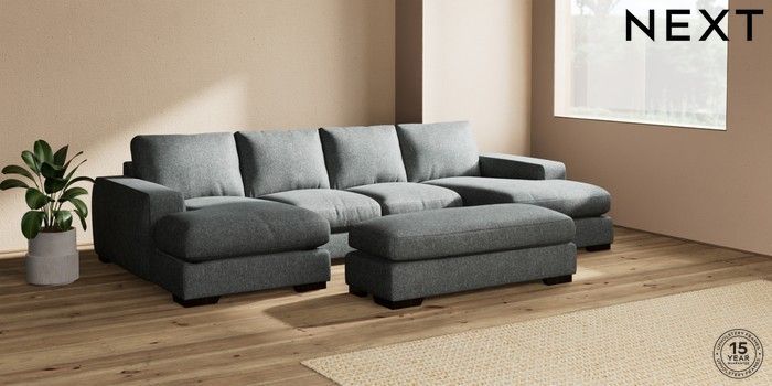 7.2.10 Houghton Deep Relaxed Sit Large - U Shaped Double Chaise with Footstool Cotswold Chenille Dark Grey Large Square Angle - Dark | Made Click here to use our website with more accessibility support, for example screen readers