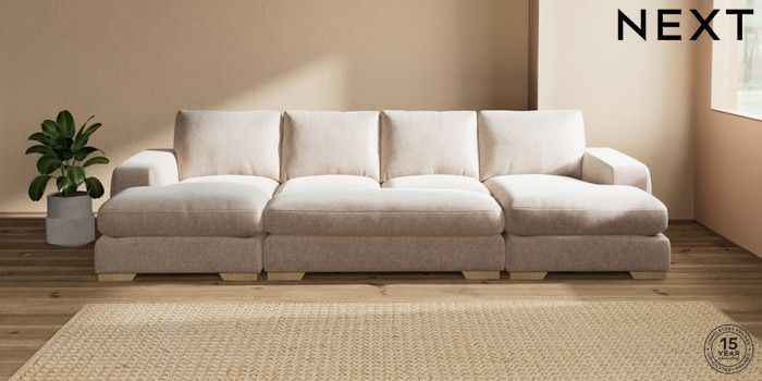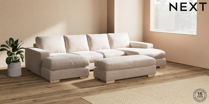 7.2.10 Houghton Deep Relaxed Sit Large - U Shaped Double Chaise with Footstool Cotswold Chenille Light Natural Large Square Angle - Light | Made Click here to use our website with more accessibility support, for example screen readers