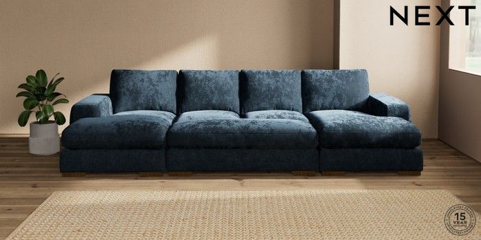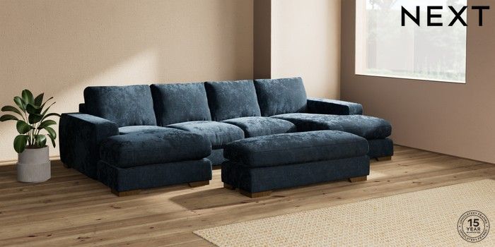 7.2.10 Houghton Deep Relaxed Sit Large - U Shaped Double Chaise with Footstool Distressed Velour Midnight Blue Large Square Angle - Mid | Made Click here to use our website with more accessibility support, for example screen readers
