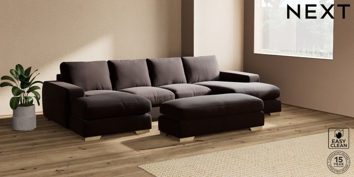 7.2.10 Houghton Deep Relaxed Sit Large - U Shaped Double Chaise with Footstool Fine Chenille Easy Clean Chocolate Brown Large Square Angle - Light | Made Click here to use our website with more accessibility support, for example screen readers