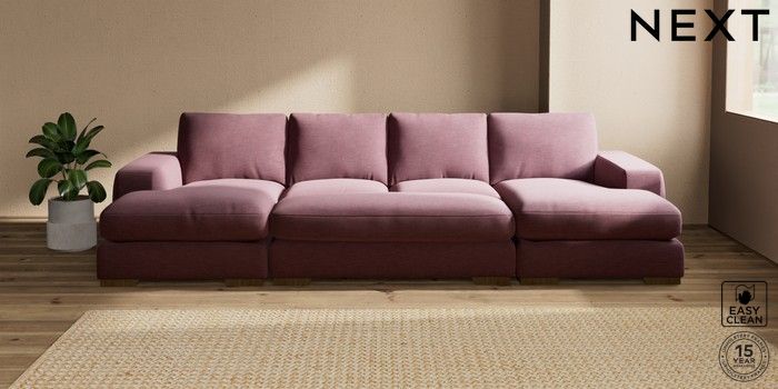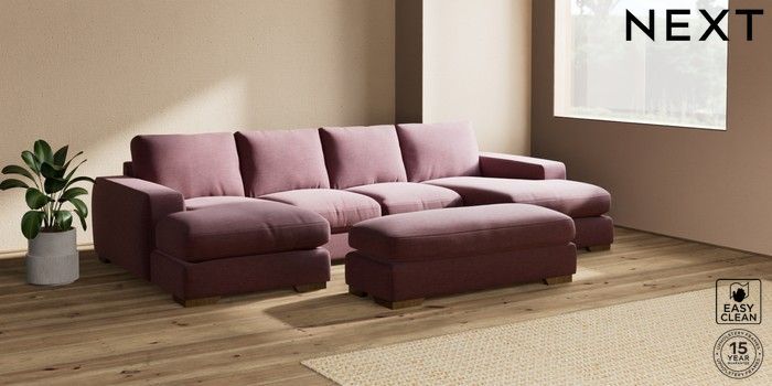 7.2.10 Houghton Deep Relaxed Sit Large - U Shaped Double Chaise with Footstool Fine Chenille Easy Clean Mid Mulberry Purple Large Square Angle - Mid | Made Click here to use our website with more accessibility support, for example screen readers