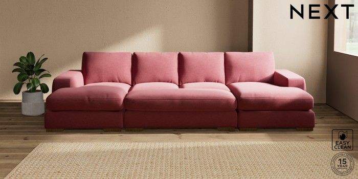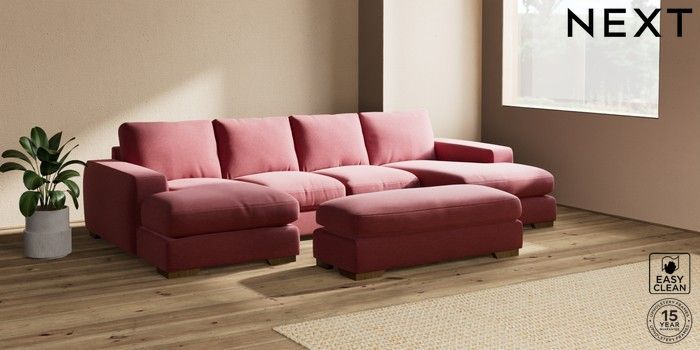 7.2.10 Houghton Deep Relaxed Sit Large - U Shaped Double Chaise with Footstool Fine Chenille Easy Clean Mid Pink Large Square Angle - Mid | Made Click here to use our website with more accessibility support, for example screen readers