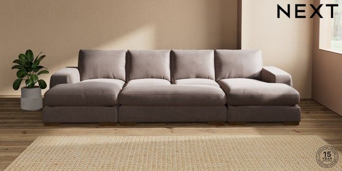 7.2.10 Houghton Deep Relaxed Sit Large - U Shaped Double Chaise with Footstool Luxe Chenille Mink Brown Large Square Angle - Mid | Made Click here to use our website with more accessibility support, for example screen readers
