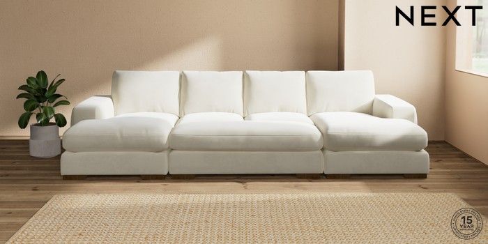 7.2.10 Houghton Deep Relaxed Sit Large - U Shaped Double Chaise with Footstool Luxe Chenille Oyster Large Square Angle - Mid | Made Click here to use our website with more accessibility support, for example screen readers