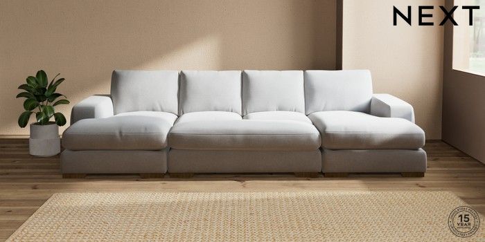 7.2.10 Houghton Deep Relaxed Sit Large - U Shaped Double Chaise with Footstool Natural Mix Light Grey Large Square Angle - Mid | Made Click here to use our website with more accessibility support, for example screen readers