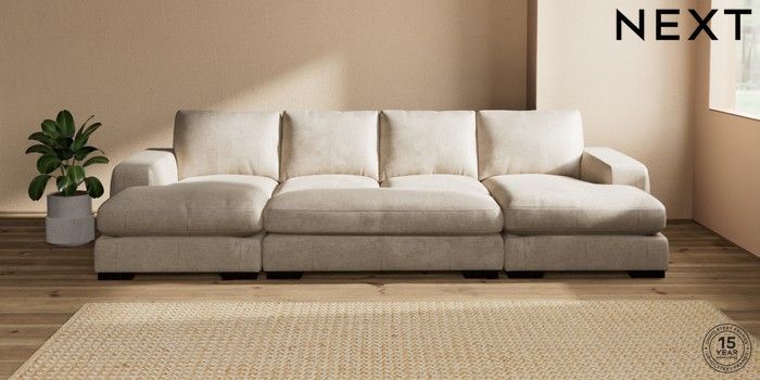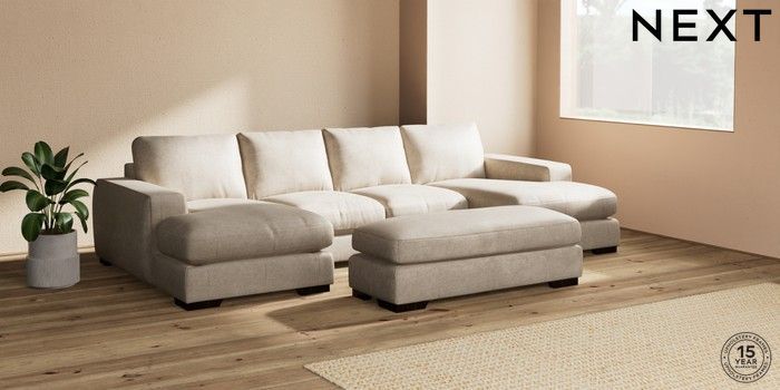 7.2.10 Houghton Deep Relaxed Sit Large - U Shaped Double Chaise with Footstool Plush Chenille Light Natural Large Square Angle - Dark | Made Click here to use our website with more accessibility support, for example screen readers
