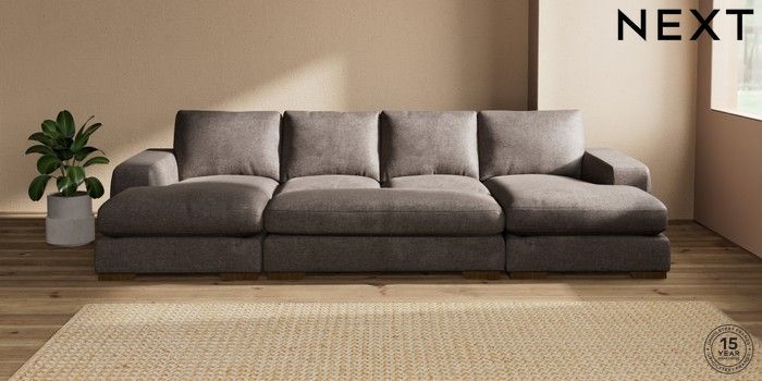 7.2.10 Houghton Deep Relaxed Sit Large - U Shaped Double Chaise with Footstool Plush Chenille Mink Brown Large Square Angle - Mid | Made Click here to use our website with more accessibility support, for example screen readers
