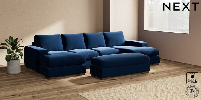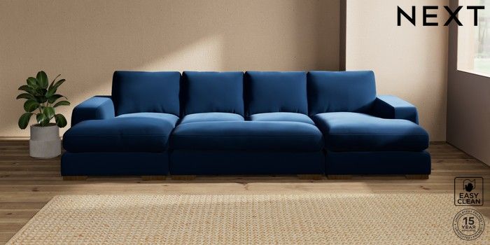 7.2.10 Houghton Deep Relaxed Sit Large - U Shaped Double Chaise with Footstool Plush Velvet Easy Clean Navy Blue Large Square Angle - Mid | Made Click here to use our website with more accessibility support, for example screen readers