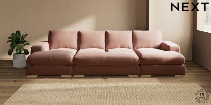 7.2.10 Houghton Deep Relaxed Sit Large - U Shaped Double Chaise with Footstool Relaxed Linen Look Light Rust Brown Large Square Angle - Light | Made Click here to use our website with more accessibility support, for example screen readers