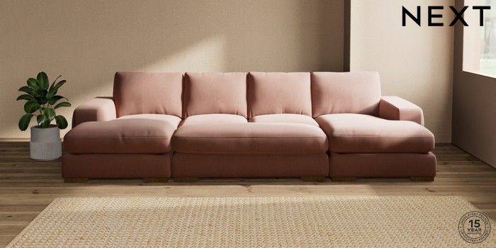 7.2.10 Houghton Deep Relaxed Sit Large - U Shaped Double Chaise with Footstool Relaxed Linen Look Light Rust Brown Large Square Angle - Mid | Made Click here to use our website with more accessibility support, for example screen readers