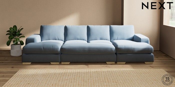7.2.10 Houghton Deep Relaxed Sit Large - U Shaped Double Chaise with Footstool Relaxed Linen Look Mid Blue Large Square Angle - Light | Made Click here to use our website with more accessibility support, for example screen readers