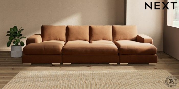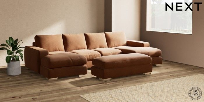 7.2.10 Houghton Deep Relaxed Sit Large - U Shaped Double Chaise with Footstool Ripple Chenille Mid Rust Brown Large Square Angle - Chrome Metal | Made Click here to use our website with more accessibility support, for example screen readers