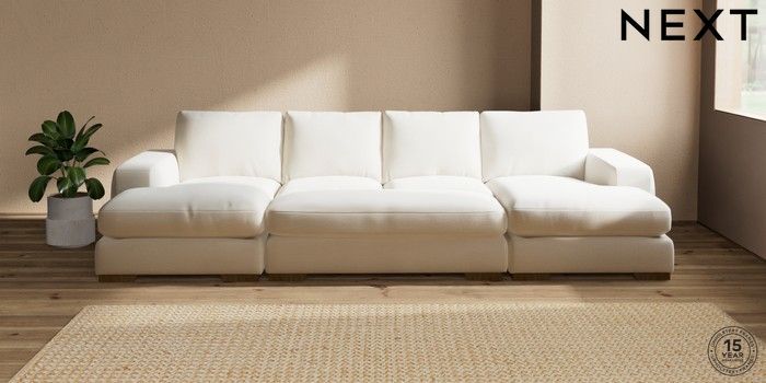 7.2.10 Houghton Deep Relaxed Sit Large - U Shaped Double Chaise with Footstool Ripple Chenille Oyster Large Square Angle - Mid | Made Click here to use our website with more accessibility support, for example screen readers