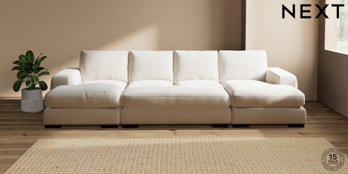 7.2.10 Houghton Deep Relaxed Sit Large - U Shaped Double Chaise with Footstool Studio Chenille Oyster Large Square Angle - Dark | Made Click here to use our website with more accessibility support, for example screen readers