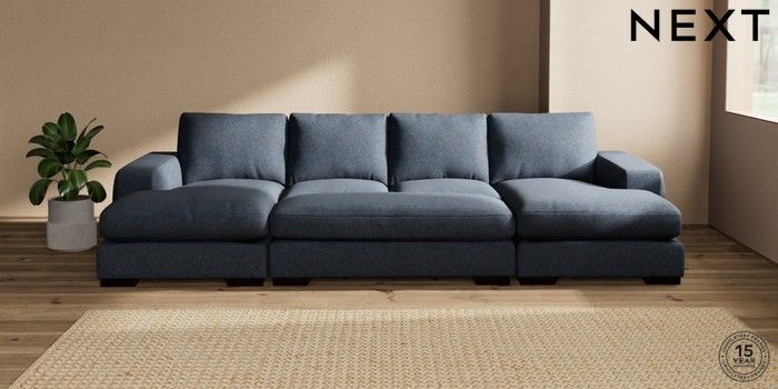 7.2.10 Houghton Deep Relaxed Sit Large - U Shaped Double Chaise with Footstool Tweedy Chenille Navy Blue Large Square Angle - Dark | Made Click here to use our website with more accessibility support, for example screen readers