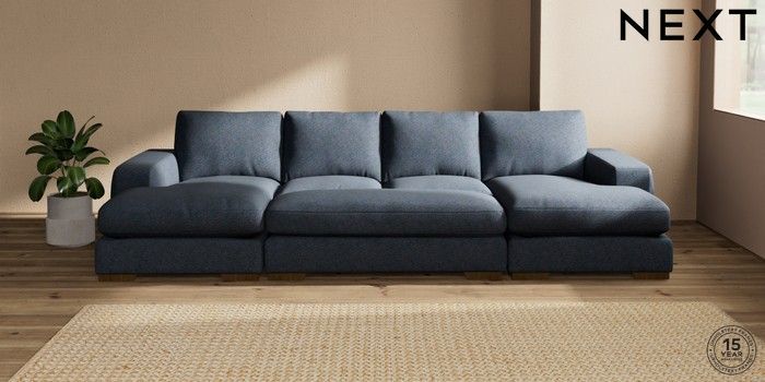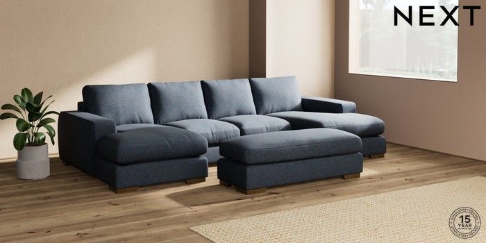 7.2.10 Houghton Deep Relaxed Sit Large - U Shaped Double Chaise with Footstool Tweedy Chenille Navy Blue Large Square Angle - Mid | Made Click here to use our website with more accessibility support, for example screen readers