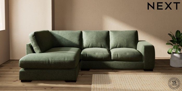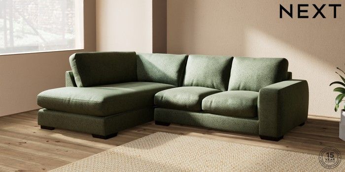 7.2.10 Houghton Deep Relaxed Sit Medium Corner Chaise - Left Hand Boucle Chenille Dark Moss Green Large Square Angle - Dark | Made Click here to use our website with more accessibility support, for example screen readers