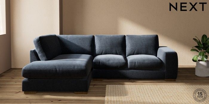 7.2.10 Houghton Deep Relaxed Sit Medium Corner Chaise - Left Hand Boucle Chenille Dark Slate Blue Large Square Angle - Mid | Made Click here to use our website with more accessibility support, for example screen readers
