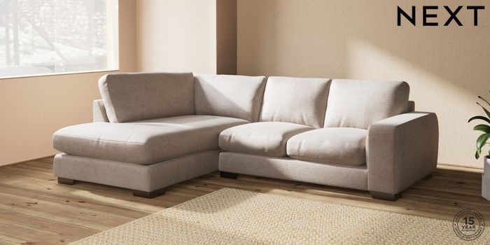 7.2.10 Houghton Deep Relaxed Sit Medium Corner Chaise - Left Hand Boucle Chenille Light Natural Large Square Angle - Gunmetal | Made Click here to use our website with more accessibility support, for example screen readers