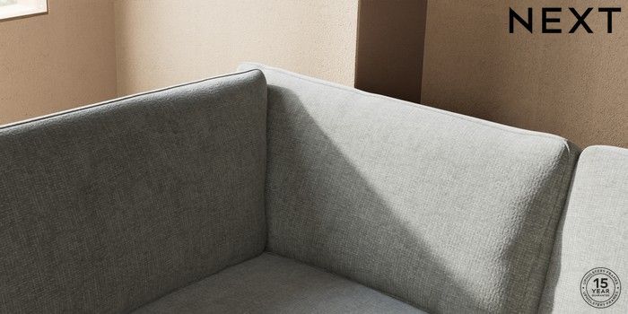 7.2.10 Houghton Deep Relaxed Sit Medium Corner Chaise - Left Hand Chunky Chenille Light Grey Large Square Angle - Chrome Metal | Made Click here to use our website with more accessibility support, for example screen readers
