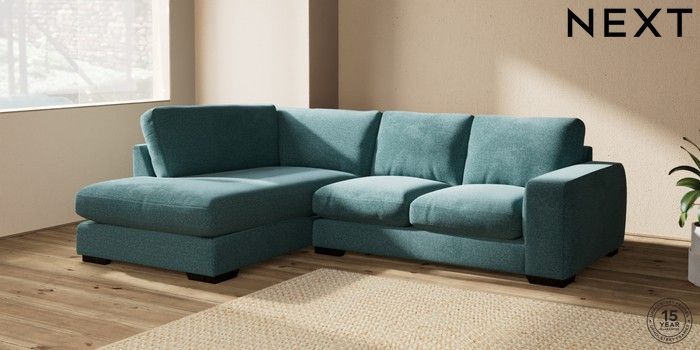 7.2.10 Houghton Deep Relaxed Sit Medium Corner Chaise - Left Hand Chunky Chenille Mid Teal Green Large Square Angle - Dark | Made Click here to use our website with more accessibility support, for example screen readers