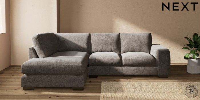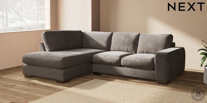 7.2.10 Houghton Deep Relaxed Sit Medium Corner Chaise - Left Hand Chunky Chenille Mink Brown Large Square Angle - Gunmetal | Made Click here to use our website with more accessibility support, for example screen readers