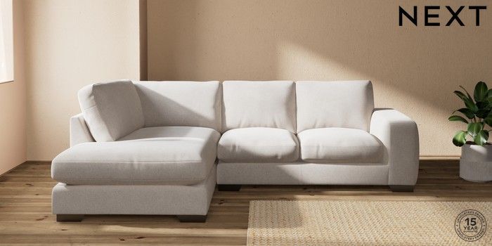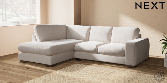 7.2.10 Houghton Deep Relaxed Sit Medium Corner Chaise - Left Hand Chunky Chenille Oyster Large Square Angle - Gunmetal | Made Click here to use our website with more accessibility support, for example screen readers