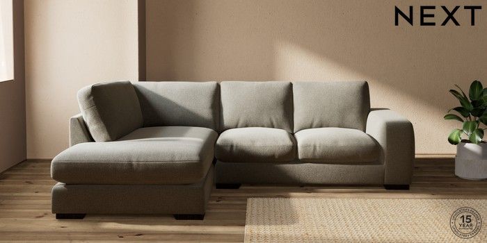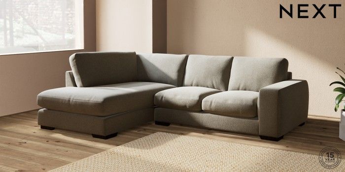 7.2.10 Houghton Deep Relaxed Sit Medium Corner Chaise - Left Hand Chunky Marl Light Olive Green Large Square Angle - Dark | Made Click here to use our website with more accessibility support, for example screen readers