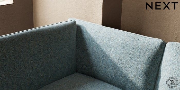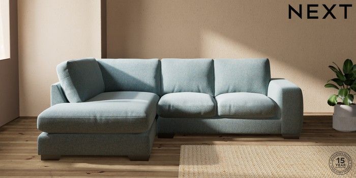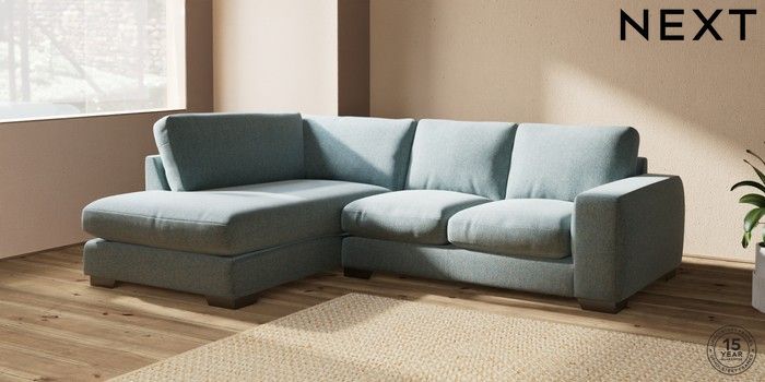 7.2.10 Houghton Deep Relaxed Sit Medium Corner Chaise - Left Hand Chunky Marl Mid Blue Large Square Angle - Gunmetal | Made Click here to use our website with more accessibility support, for example screen readers
