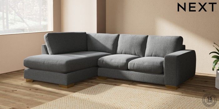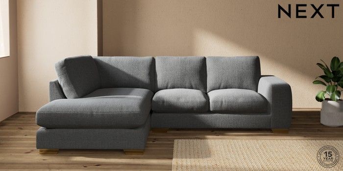 7.2.10 Houghton Deep Relaxed Sit Medium Corner Chaise - Left Hand Chunky Texture Dark Grey Large Square Angle - Brushed Brass | Made Click here to use our website with more accessibility support, for example screen readers