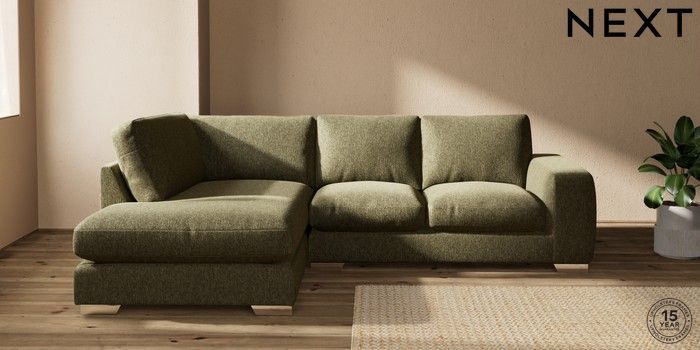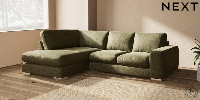 7.2.10 Houghton Deep Relaxed Sit Medium Corner Chaise - Left Hand Cotswold Chenille Dark Green Large Square Angle - Chrome Metal | Made Click here to use our website with more accessibility support, for example screen readers