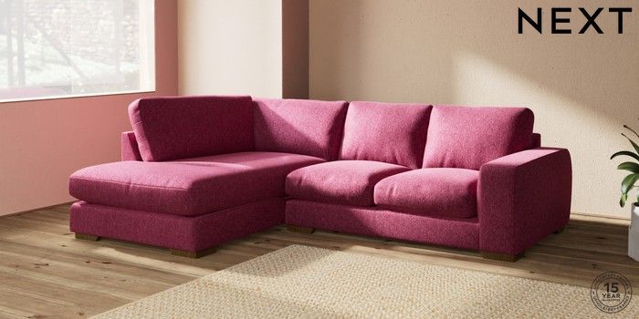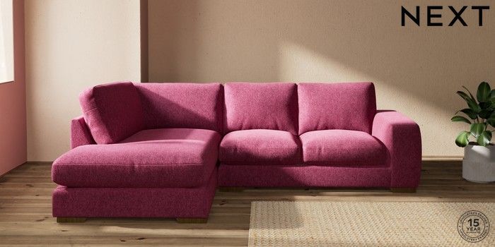 7.2.10 Houghton Deep Relaxed Sit Medium Corner Chaise - Left Hand Cotswold Chenille Dark Raspberry Pink Large Square Angle - Mid | Made Click here to use our website with more accessibility support, for example screen readers