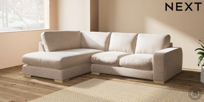 7.2.10 Houghton Deep Relaxed Sit Medium Corner Chaise - Left Hand Cotswold Chenille Light Natural Large Square Angle - Light | Made Click here to use our website with more accessibility support, for example screen readers