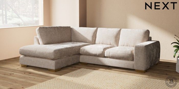 7.2.10 Houghton Deep Relaxed Sit Medium Corner Chaise - Left Hand Distressed Velour Mid Natural Large Square Angle - Brushed Brass | Made Click here to use our website with more accessibility support, for example screen readers