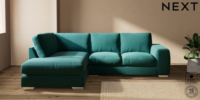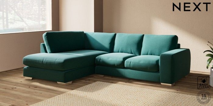 7.2.10 Houghton Deep Relaxed Sit Medium Corner Chaise - Left Hand Fine Chenille Easy Clean Dark Juniper Green Large Square Angle - Chrome Metal | Made Click here to use our website with more accessibility support, for example screen readers