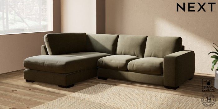 7.2.10 Houghton Deep Relaxed Sit Medium Corner Chaise - Left Hand Fine Chenille Easy Clean Dark Moss Green Large Square Angle - Dark | Made Click here to use our website with more accessibility support, for example screen readers