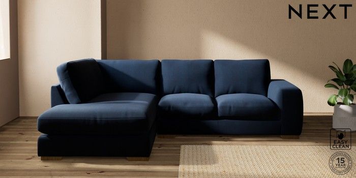 7.2.10 Houghton Deep Relaxed Sit Medium Corner Chaise - Left Hand Fine Chenille Easy Clean Dark Navy Blue Large Square Angle - Mid | Made Click here to use our website with more accessibility support, for example screen readers