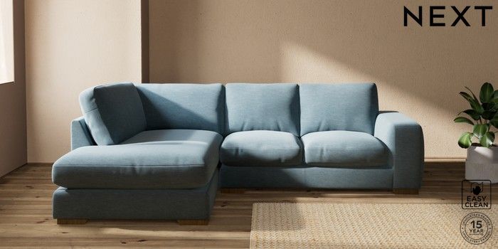 7.2.10 Houghton Deep Relaxed Sit Medium Corner Chaise - Left Hand Fine Chenille Easy Clean Mid Blue Large Square Angle - Mid | Made Click here to use our website with more accessibility support, for example screen readers