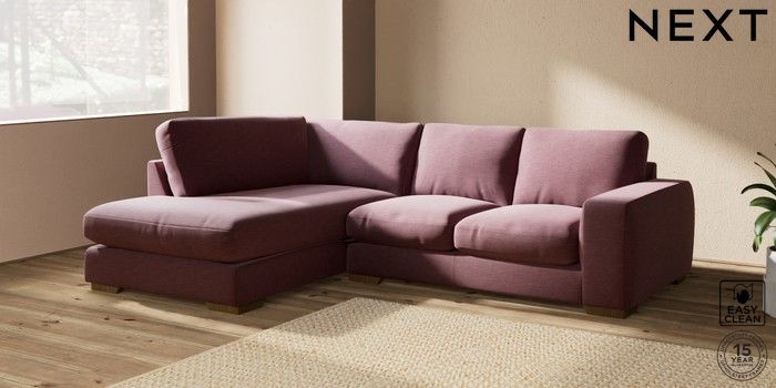 7.2.10 Houghton Deep Relaxed Sit Medium Corner Chaise - Left Hand Fine Chenille Easy Clean Mid Mulberry Purple Large Square Angle - Mid | Made Click here to use our website with more accessibility support, for example screen readers
