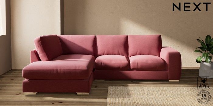 7.2.10 Houghton Deep Relaxed Sit Medium Corner Chaise - Left Hand Fine Chenille Easy Clean Mid Pink Large Square Angle - Chrome Metal | Made Click here to use our website with more accessibility support, for example screen readers