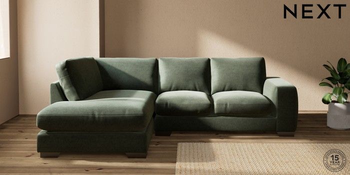 7.2.10 Houghton Deep Relaxed Sit Medium Corner Chaise - Left Hand Luxe Chenille Mid Green Large Square Angle - Gunmetal | Made Click here to use our website with more accessibility support, for example screen readers